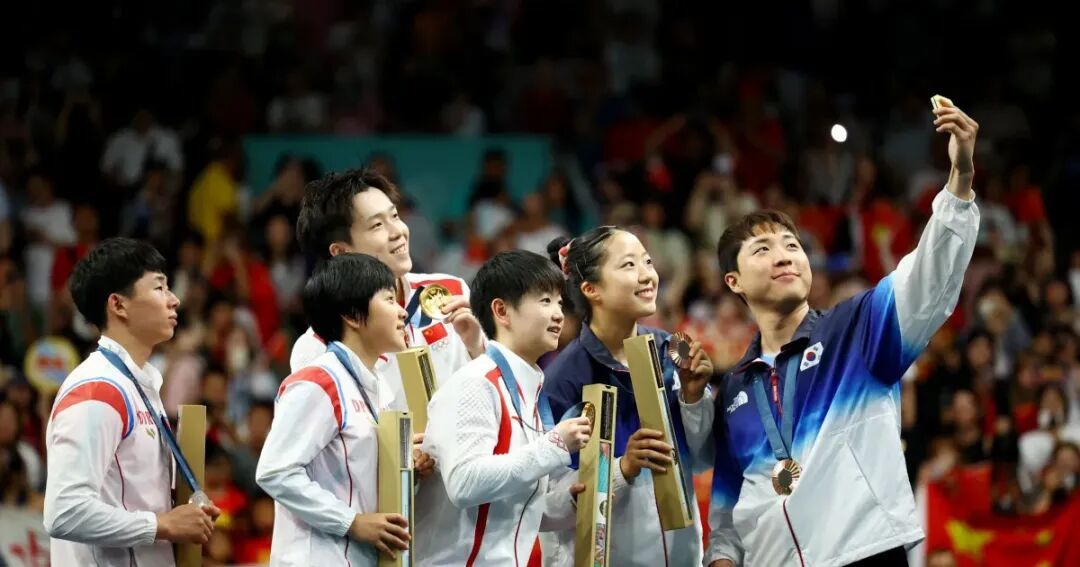 如果大家有印象,巴黎奥运会运动员入场时的很多船上视角,以及「中朝韩乒乓混双自拍」等领奖台名场面,都是来自于三星手机。
